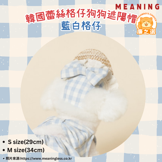 Sale韓國蕾絲格仔狗狗遮陽帽